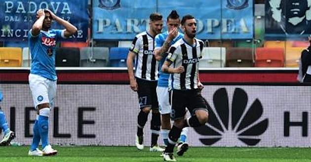 Derrota del Napoli como visitante ante Udinese 3-1. Con doblete del portuguès Bruno y anotaciòn del francès Thereau, el Udinese alejò a los napolitanos seis puntos de la lucha por el scudetto. Gonzalo Higuaín anotó el empate temporal, sin embargo, se fue expulsado y en espera de saber su posible sanciòn por empujar al silbante central. Cotejo correspondiente a la 31º fecha de la Serie A, celebrado en el Stadio Friuli.