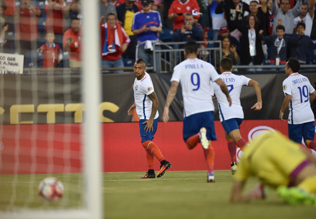 Juan Carlos “Conejo” Arce, capitán de Bolivia, perdió el esférico ante Arturo Vidal en una salida. El jugador de la Juventus filtró un pase para Mauricio Pinilla. El delantero del Atalanta devolvió de primera intención, para que el “Rey” Arturo convirtiera un penalti en movimiento con un tiro raso que le daba a los andinos la ventaja al iniciar el segundo tiempo.