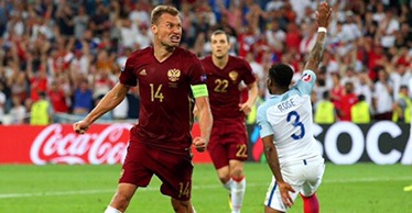 En la última jugada del encuentro, Vasili Berezutski le dio el empate a su selección tras un remate de cabeza. La jugada del tanto inició con un centro que mandó el mediocampista Oleg Shatov. El esférico le cayó al zaguero ruso, que brincó entre dos defensas y mandó su remate al ángulo superior derecho de la portería de defendía Joe Hart.