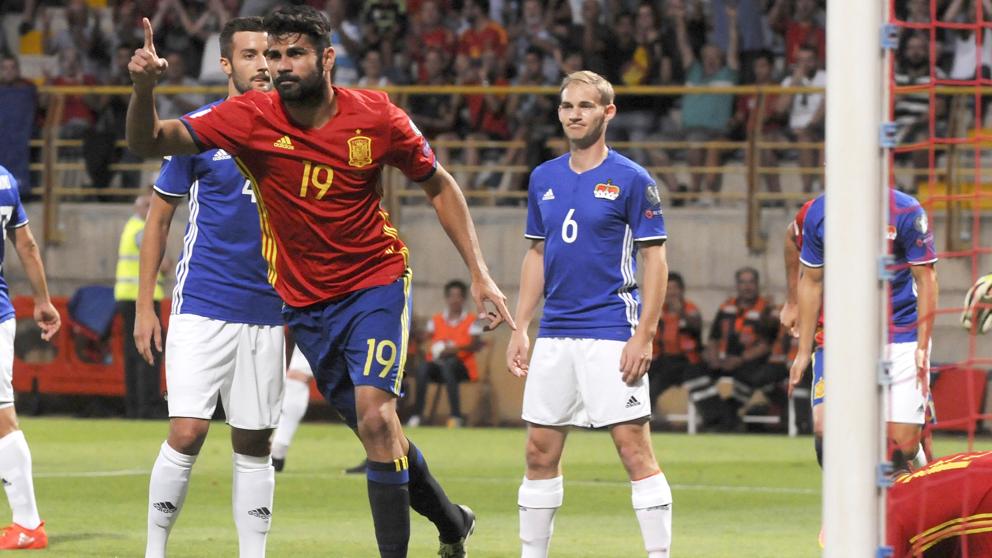 La selección española, ya dirigida por Julen Lopetegui, goleó ocho goles a cero a la selección de Liechtenstein en el Estadio Municipal Reino de León. Diego Costa al minuto 10 y al 65 anoto un doblete, ambos tantos fueron hechos de cabeza. Por otro lado, David Silva también marcó un par de goles en el partido. El delantero del Real Madrid, quien entró al minuto 66 por el delantero del Chelsea, Costa, fue partícipe de dos goles en el partido. Vitolo y Sergi Roberto también se sumaron a la fiesta del gol para culminar el partido con diferencia de ocho goles. Con dicho resultado “La Roja” se coloca como líder en el sector “G” por diferencia de goles.