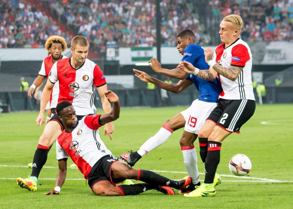 Con cuadro alternativo, los dirigidos por José Mourinho cayeron por la mínima como visitantes, frente al Feyenoord Rotterdam, en el estadio De Kuip. El Manchester United no tuvo una buena actuación en Holanda, ya que solo llego 3 ocasiones en los 90 minutos. El equipo holandés solo le bastó una jugada para llevarse la primera victoria de este certamen. El autor del único tanto del partido fue el joven centrocampista Tonny Vilhena. Esto significo la segunda derrota de los Red Devils en tan solo 5 días.