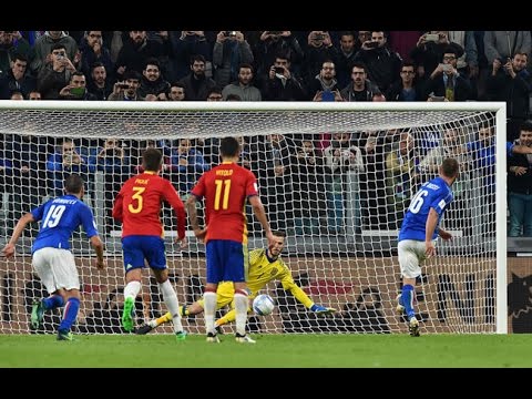 Fue al minuto 82 del partido cuando Italia anotó para poder empatar a un gol el partido. Belotti desbordó por la banda de la derecha y casi cayéndose mandó una diagonal hacia atrás para que Éder se hiciera la pelota y con la recepción quitarse a Sergio Ramos quién puso su pie y chocaron ambos, para que el árbitro dudara, pero al final marcara falta desde los once pasos. Después de dicha decisión el central platicó con su auxiliar unos segundos ante los reclamos de los españoles, pero al final su decisión no cambió. Danielle de Rossi quién recibió un homenaje por haber llegado a 100 juegos con su selección, se encarreró y antes de llegar al balón hizo una finta para tirar despacio a su izquierda y engañar a De Gea.