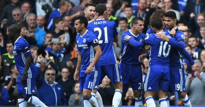 El Chelsea continúa hundiendo al actual campeón de la Premier League tras golearlo 3-0 en el estadio Stamford Bridge. Con anotaciones de Diego Costa, Eden Hazard y Victor Moses los Blues consiguieron los tres puntos que lo dejan a tres unidades del líder. Por su parte el equipo de Claudio Ranieri sumó su cuarta derrota en la campaña.