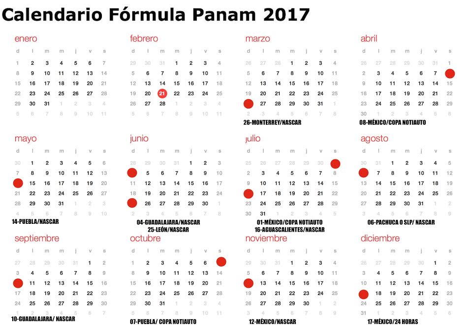 Tras el fin de la temporada 2016 y el receso invernal, la Fórmula PANAM se prepara para regresar a hacer rugir las pistas mexicanas con jóvenes pilotos que buscan llegar a las grandes categorías. El inicio de la nueva etapa traerá cambios en la categoría comenzando por su calendario, el cual se dividirá en 12 fechas que tendrán lugar dentro de dos distintos campeonatos la Copa Notiauto y la NASCAR Peak México.