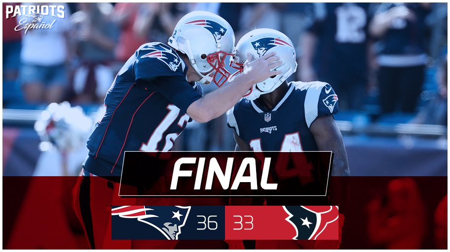 Los Patriots sufrieron para vencer a los Texans por la semana tres de la NFL en el Gillette Stadium, en un juego donde Tom Brady lanzó 378 yds para cinco touchdowns y Desahun Watson 301 para dos anotaciones; siendo su primer duelo con más de 300 yds para el de Clemson.