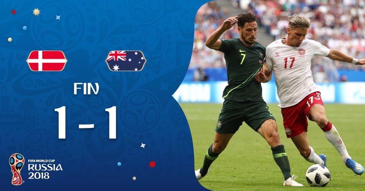 Ericksen anotó su primer tanto del torneo. Mientras que del lado australiano Jedinak anotó su segundo tanto, ambos han sido via penal marcados por el VAR. Ha sido el unico jugador se Australia en anotar gol en esta Copa del Mundo. Dinamarca en este partido recibió u primer gol del torneo después de vencer a Perú 1-0.