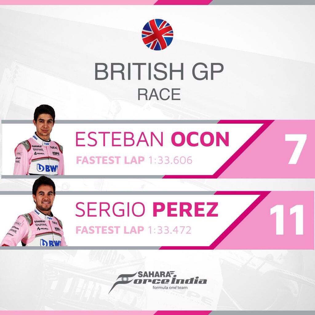 Pérez arrancó el Gran Premio Británico en las últimas posiciones y durante la carrera logró remontar puestos pero quedó a 0.6 segundos de Pierre Gasly, quien finalizó en el décimo lugar.