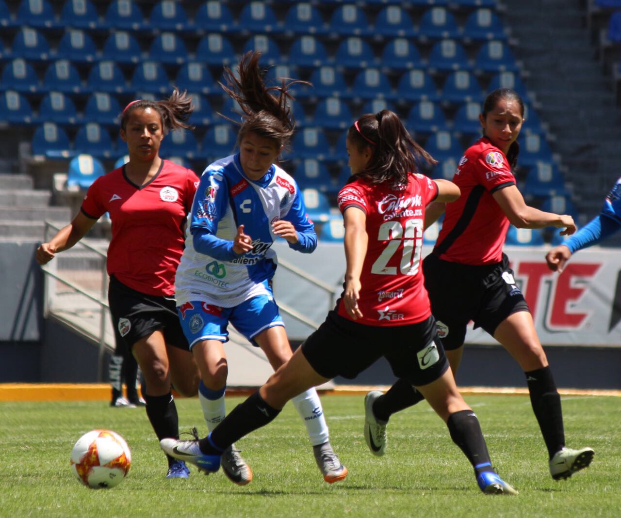 Para el segundo tiempo, Puebla comenzó a manejar la esférica con toques cortos y buscar en algún contragolpe hacer daño con la velocidad de Karla Saavedra.