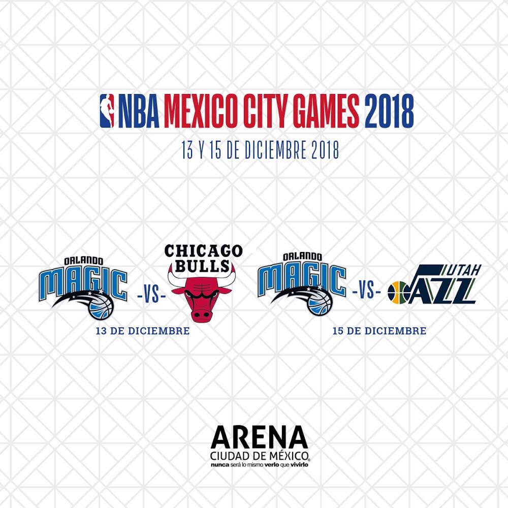 A través de una conferencia vía Facebook live, la NBA anunció que el Orlando Magic será el equipo local en ambos juegos, se enfrentará a los Chicago Bulls el jueves 13 de diciembre y al Jazz de Utah el sábado 15 de diciembre en la Arena Ciudad de México.