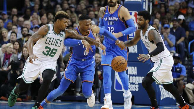 Boston Celtics terminó con la victoria 101 a 95 ante el Oklahoma City Thunder, siendo Jayson Tatum el máximo referente de los Celtics con 24 puntos y una clavada espectacular en la cara de Paul George para empatar el encuentro a 95 puntos quedando un minuto en el último cuarto.