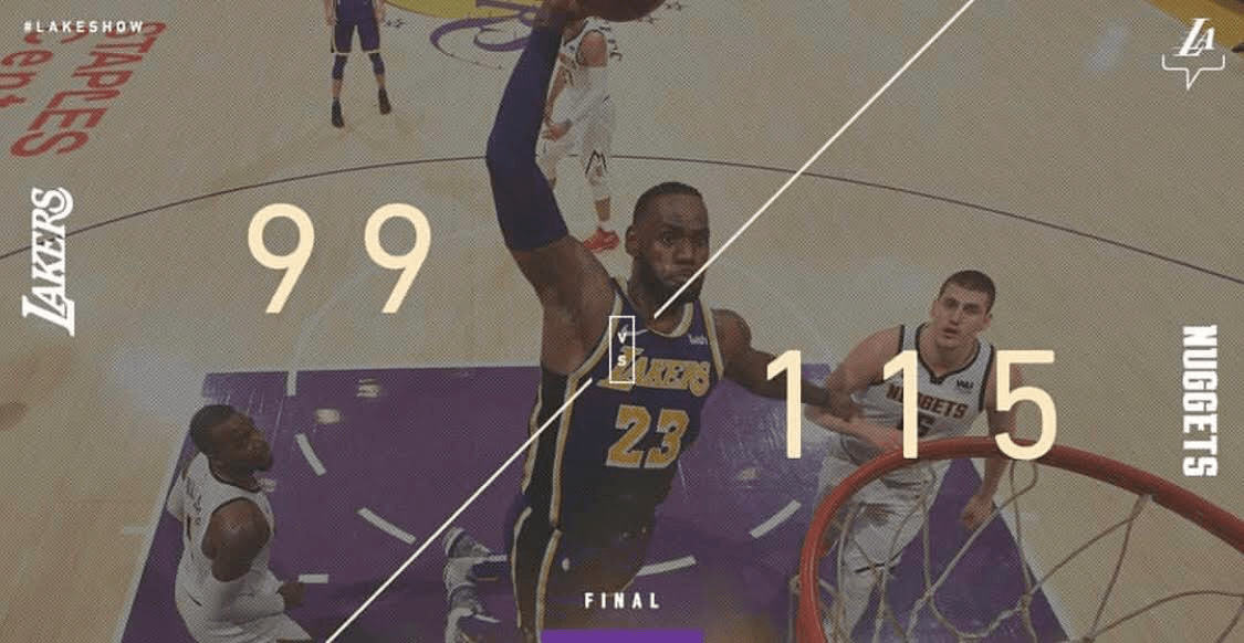 Will Barton lideró a los Nuggets con 23 puntos, cuatro rebotes y cinco asistencias para vencer a unos Lakers que intentaron ponerse a dos puntos en el último cuarto, pero fue Gary Harris quien ayudó a los suyos a llevarse la victoria cuando venían de tres minutos de no anotar, metiendo ocho puntos importantes para mantener el margen y agotar la esperanza de los Lakers.