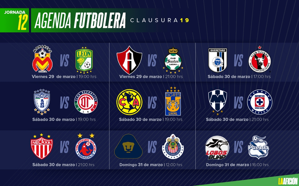 Uno de los duelos más atractivos del sábado lo protagonizarán América y Tigres en punto de las 19:00 horas en el Estadio Azteca, los felinos buscarán la victoria que les permita acceder al liderato en caso de que pierda León y las Águilas buscan alcanzar a Monterrey en puntos en caso de ganar. Tigres no pierde en el coloso de Santa Úrsula desde el Clausura 2015.