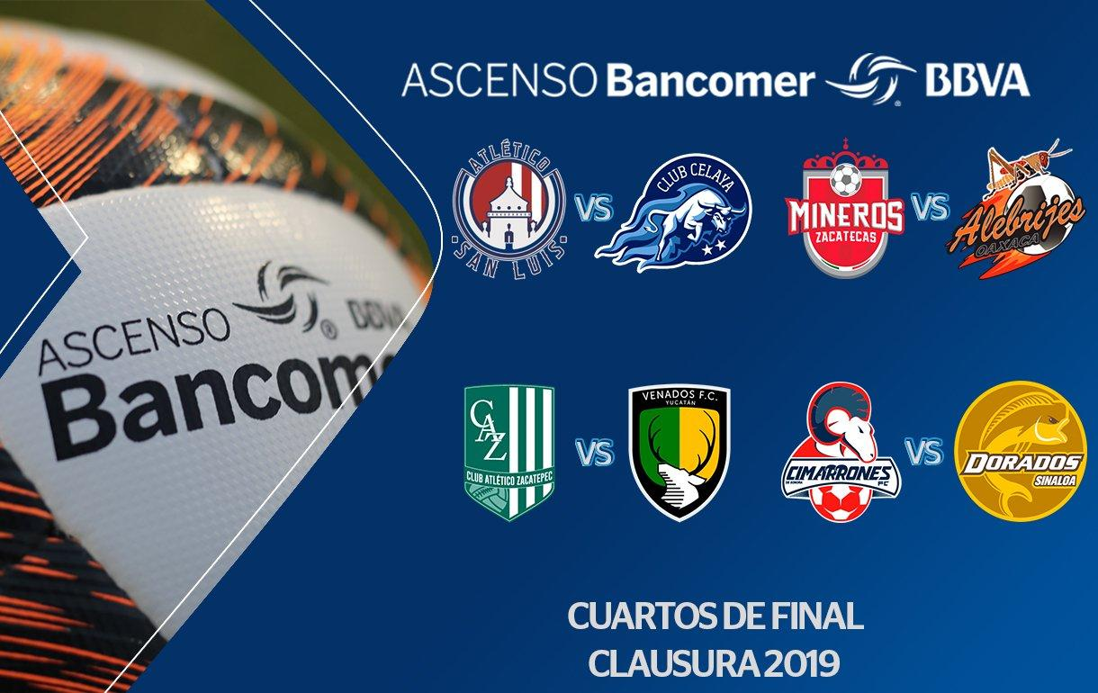 Tras 15 jornadas, se definieron los Cuartos de Final del Ascenso Bancomer MX del Clausura 2019, de los 8 clasificados, 6 tienen certificado para ascender: Dorados, San Luis, Zacatepec, Mineros, Cimarrones y Alebrijes. Venados y Celaya están en trámites para obtener el certificado.