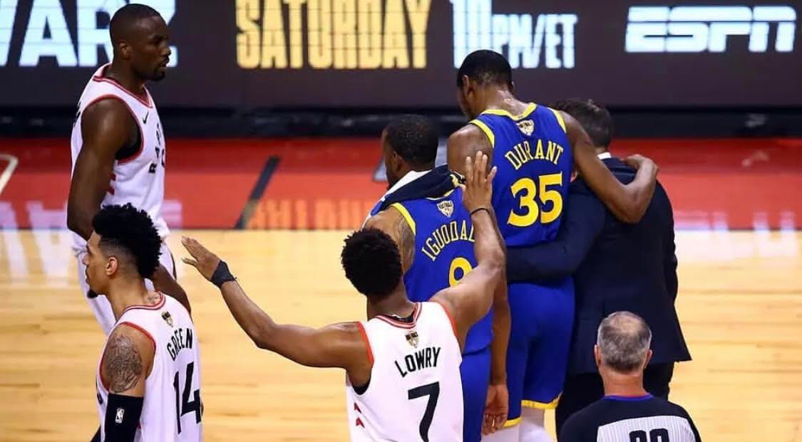 Kyle Lowry pudo ganar el partido, pero la defensa de Draymond Green le hizo tomar un mal tiro y terminó el juego a pesar de sólo ir abajo por un punto. Se sabía que Durant no estaba totalmente recuperado y esta recaída lo deja sin duda fuera de posibilidad para regresar, los Warriors llevan a un sexto partido al Oracle Arena y esta será la última vez que jueguen en ese estadio.