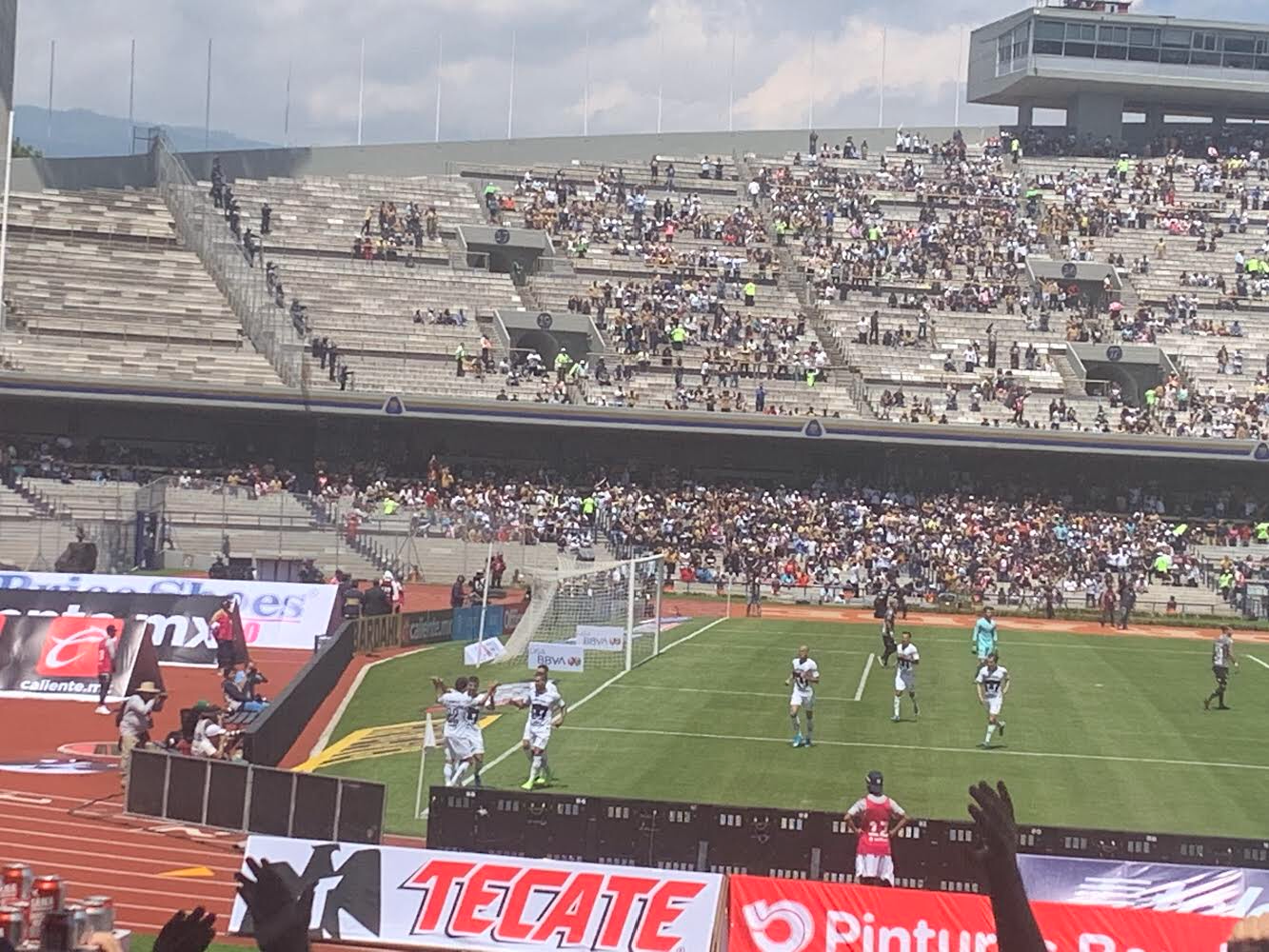 El equipo universitario dominó todo el encuentro y jugó 20 minutos con un hombre más ya que Alex Peña del equipo de Aguascalientes cometió un penal, el cual anotó Barrera.