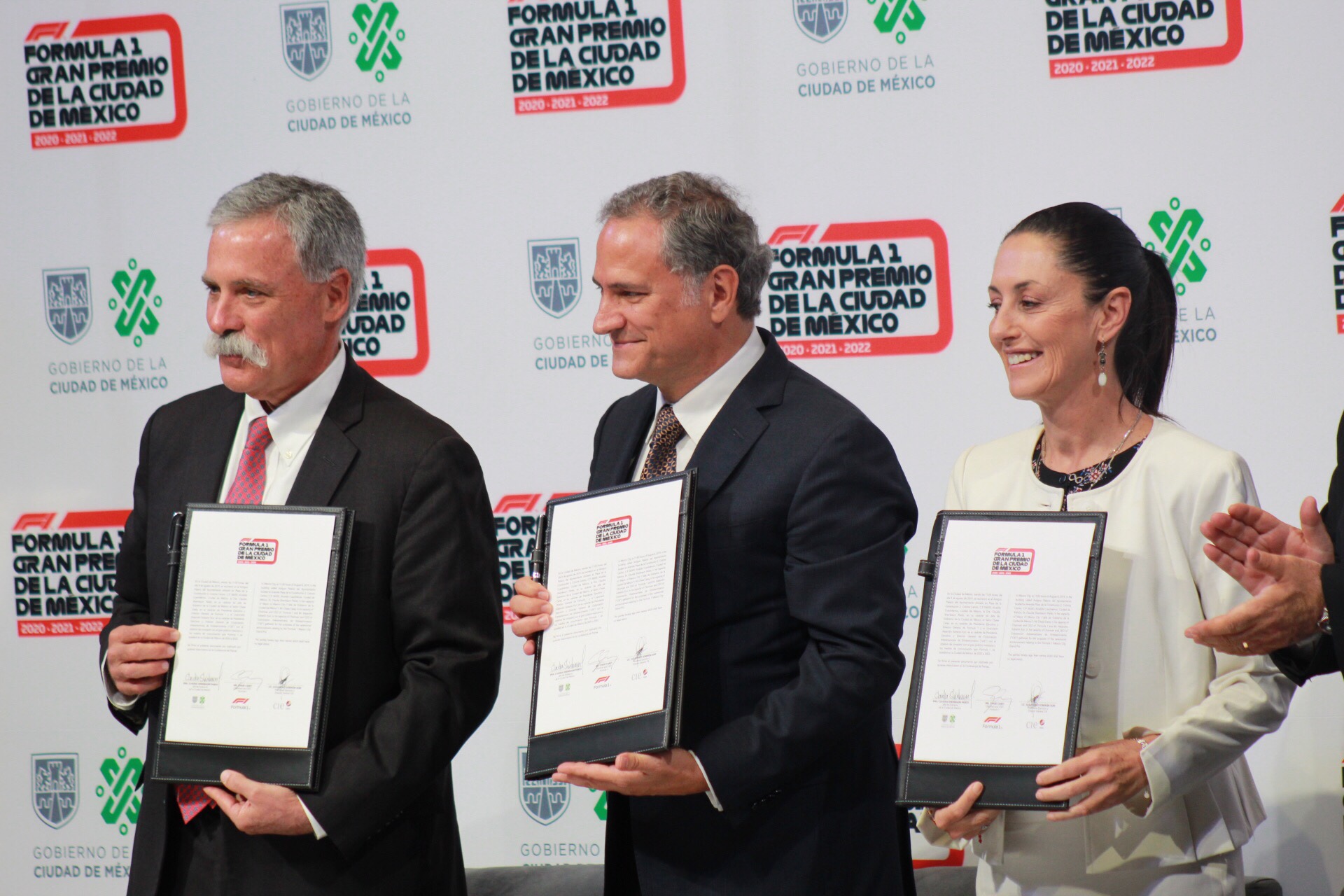 En la rueda de prensa el centro de la CDMX firmaron la renovación del contrato el Director General de la Fórmula 1, el Director CIE la empresa encargada del GP de México y la doctora Claudia Sheinbaum.