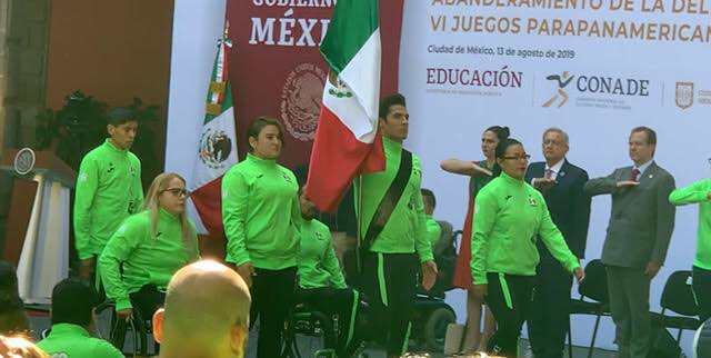El presidente Andres Manuel López Obrador encabezó el abanderamiento de la delegación mexicana que competirán en los próximos Juegos Parapanamericanos Lima 2019.
