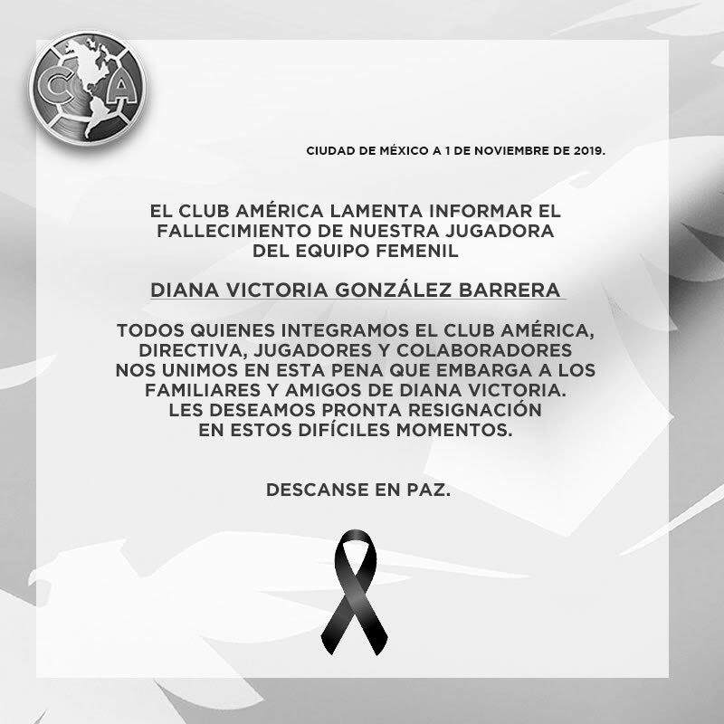 A través de un comunicado, el club dio a conocer la muerte de la futbolista, externando sus condolencias para sus amigos y familiares.