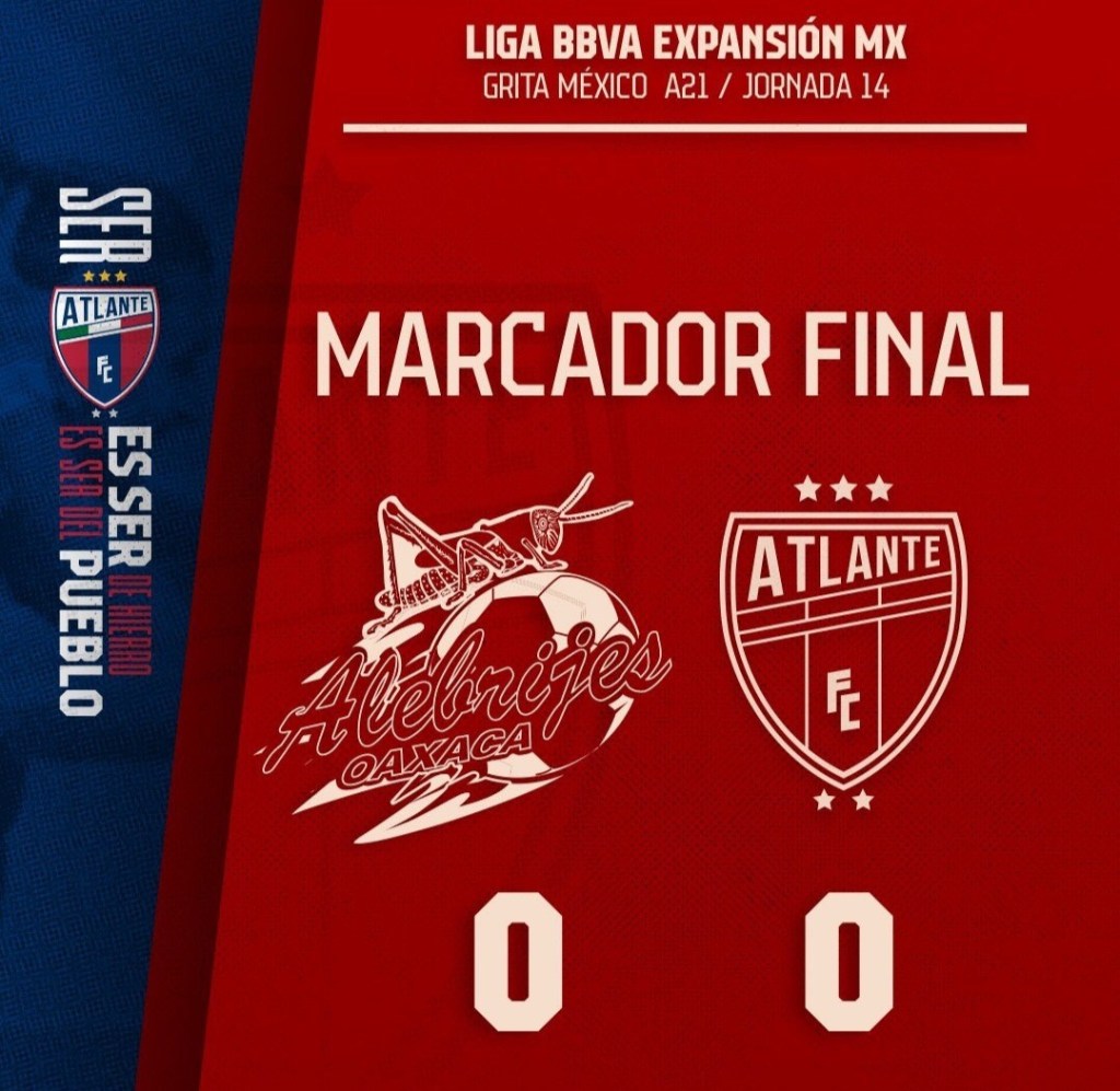 En el partido correspondiente a la jornada 14, Atlante no pudo ganar de visita frente a Alebrijes en un partido bastante disputado, pero pese a esto, clasificó a la liguilla de la liga Expansión MX.
