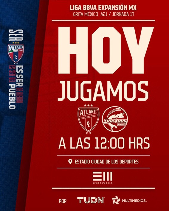 Atlante busca seguir con su buen paso y tratar de llegar a 36 puntos y permanecer en la segunda posición de la tabla general, por su parte Dorados busca seguir como líder absoluto de la competencia y poder llevarse las 3 unidades en condición de visitante.