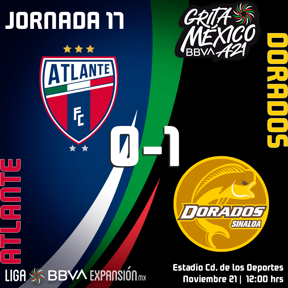 El Atlante recibió a los Dorados de Sinaloa en el Estadio Azulgrana en la ultima jornada de la Liga de expansión de México, los Dorados, el líder general de la tabla se enfrentaron a los Potros de Hierro, segundo lugar general.
