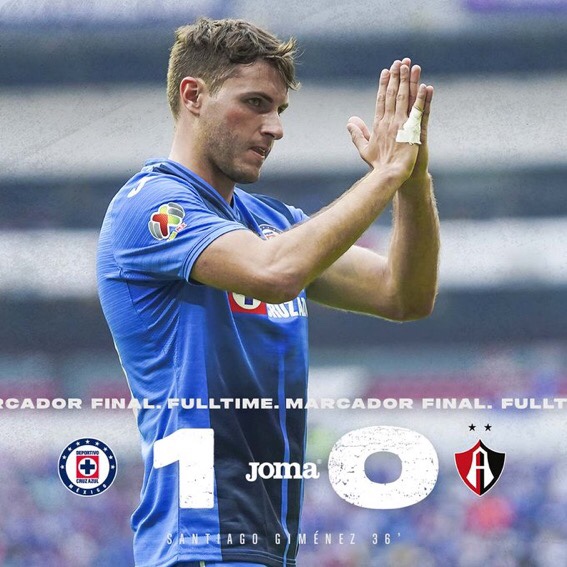 El Cruz Azul derrotó 1-0 al Atlas en la cancha del Estadio Azteca con solitario gol de Santiago Giménez.