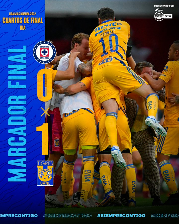 Los Tigres se impusieron al Cruz Azul 1-0 en la ida de los Cuartos de Final en el Estadio Azteca.