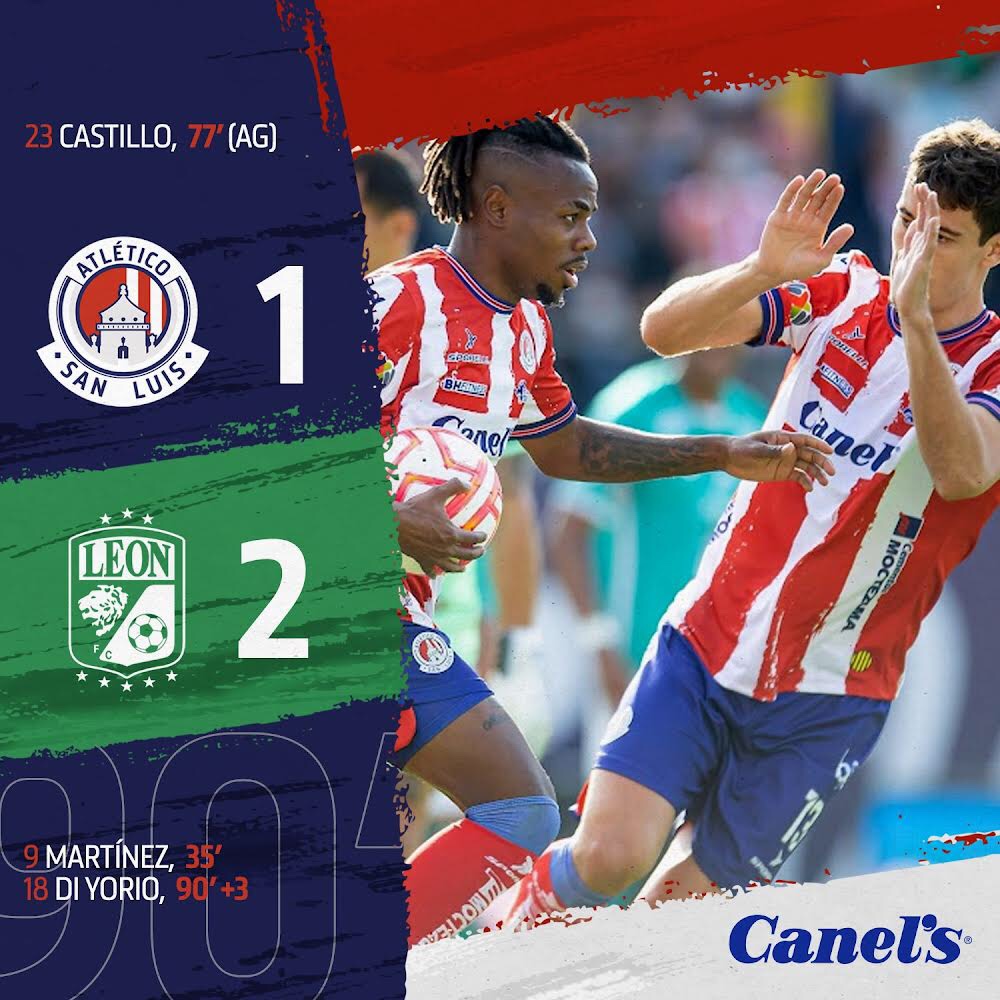 El club dirigido por André Jardine, director técnico de Atlético de San Luis, el único tanto para su equipo llegó al 77’ gracias al autogol del jugador Mairon Castillo, por parte de los de León, la diana vino por parte de Federico Martínez al 35’ y Di Yoro al 90+3’