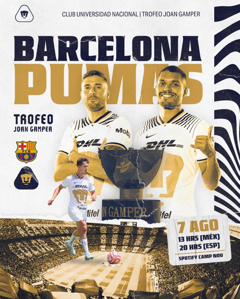 Pumas llega con la ambición de buscar hacer historia y ser el cuarto equipo en arrebatarle el Joan Gamper al FC Barcelona desde 1997, no será fácil pero cuentan ya con el historial de ganarle al rival del Barca en casa, aquella victoria en el 2004 por el Trofeo Santiago Bernabéu en la Casa Blanca, venciendo al Real Madrid 1-0 ilusiona a los universitarios en repetir hazaña esta vez en el Camp Nou.