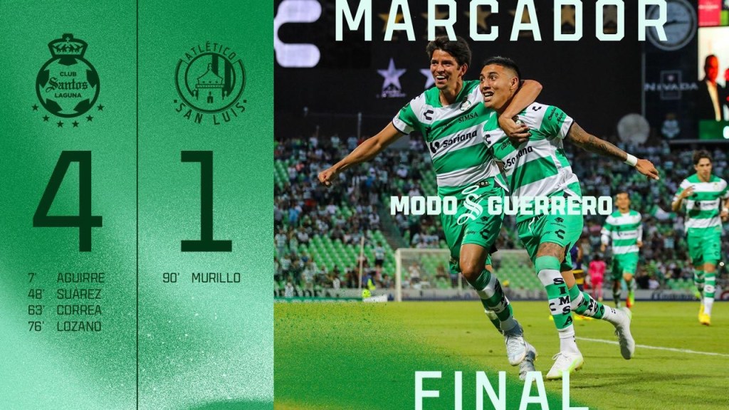 Santos derrotó 4-1 al San Luis en el estadio Corona por la jornada 11 del Apertura 2022.