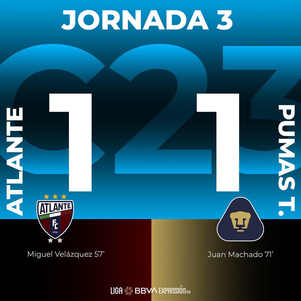 Hoy por la noche se llevó a cabo en el Estadio Azulgrana el encuentro correspondiente a la jornada 3 de la Liga de Expansión BBVA entre Atlante y Pumas Tabasco.