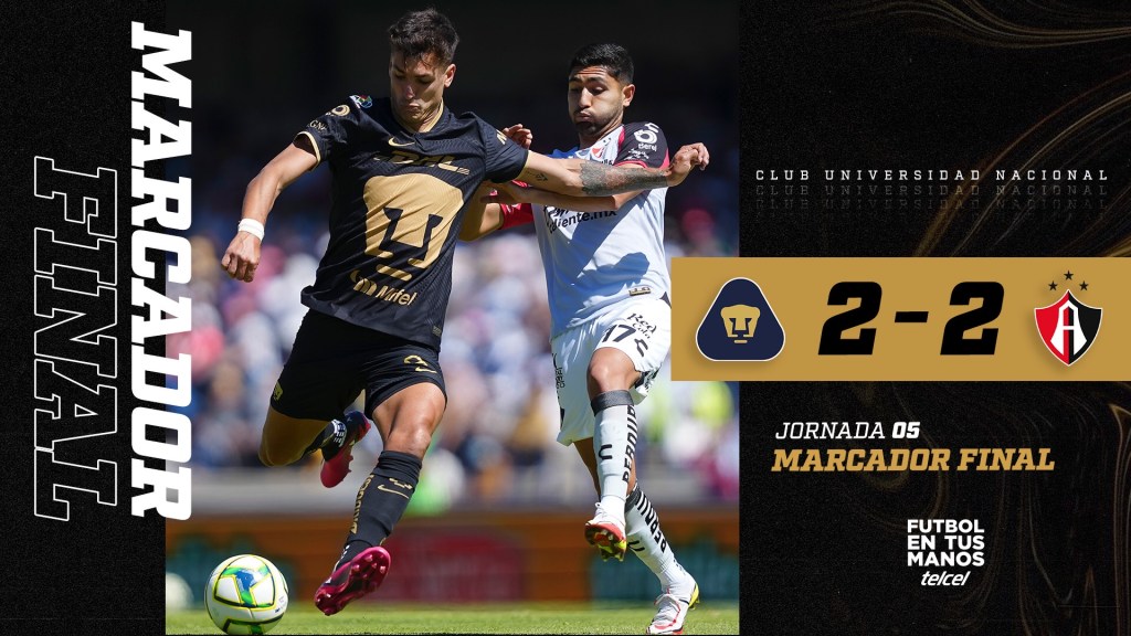 Los Pumas de la Universidad Nacional Autónoma de México (UNAM) empataron 2-2 ante el Atlas FC en el Estadio Olímpico Universitario en la Jornada 5 de la Liga MX el 5 de febrero.