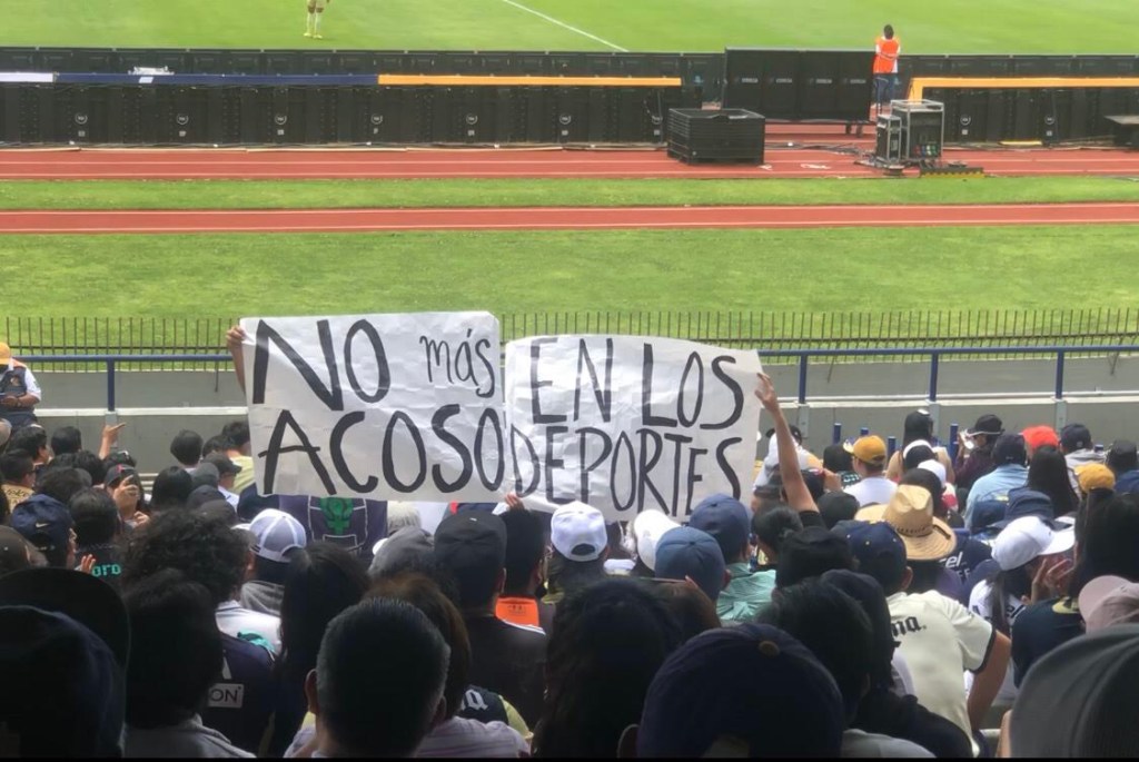 En el segundo tiempo las aficionadas mostraron un cartel en las gradas con la leyenda: “No más acoso en los deportes”. Fueron ovacionadas por parte de la afición que se dio cita al encuentro, pero los elementos de seguridad les pidieron que guardaran el cartel debido a que estaba prohibido.