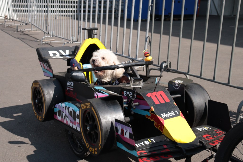Por último, hubo una curiosa e inusual presencia en el evento: un perro aficionado al automovilismo. Este curioso canino se paseó por el lugar en su propio monoplaza réplica del Red Bull, dejando a todos sorprendidos y sacando sonrisas en el público.