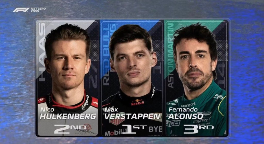 La Q3 vivió diversos cambios en especial con Nico Hülkenberg, piloto de Haas, que se mantuvo firme, obstaculizando al dos veces Campeón del Mundo, Fernando Alonso, que hizo una gran gestión de neumáticos, para poder así lograr el 3° lugar y mantener a Aston Martin en los tres puestos.