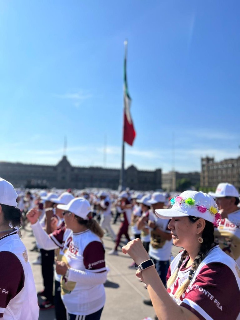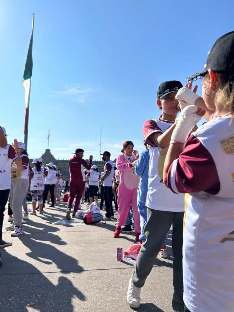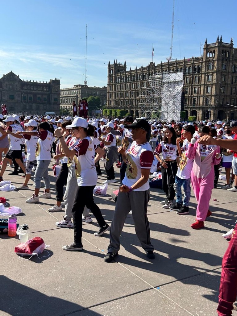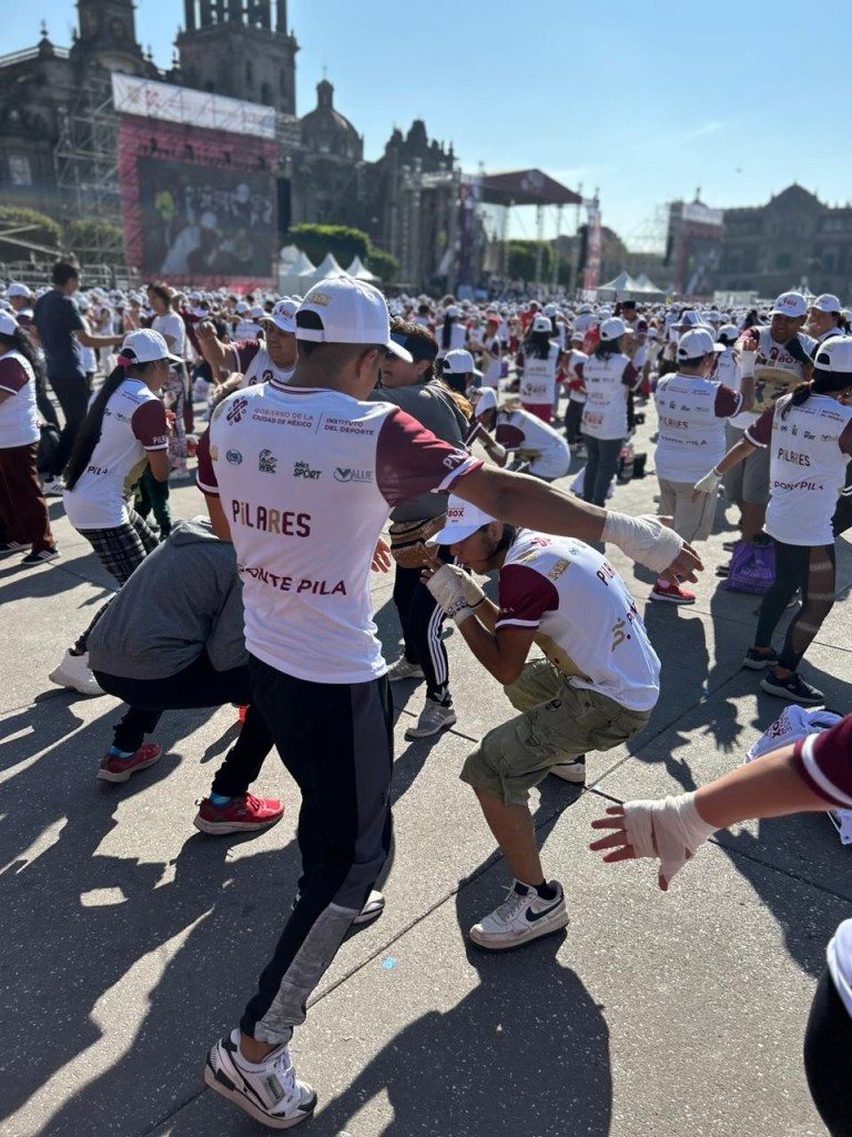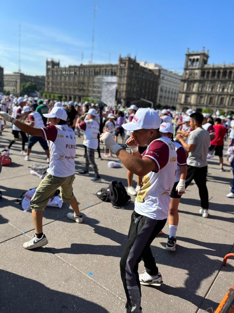Se llevo acabo en el Zócalo de la Ciudad Mexico la segunda edición de la clase masiva de boxeo, a la cual acudieron más de 30 mil personas y algunas leyendas del boxeo como Julio César Chávez.