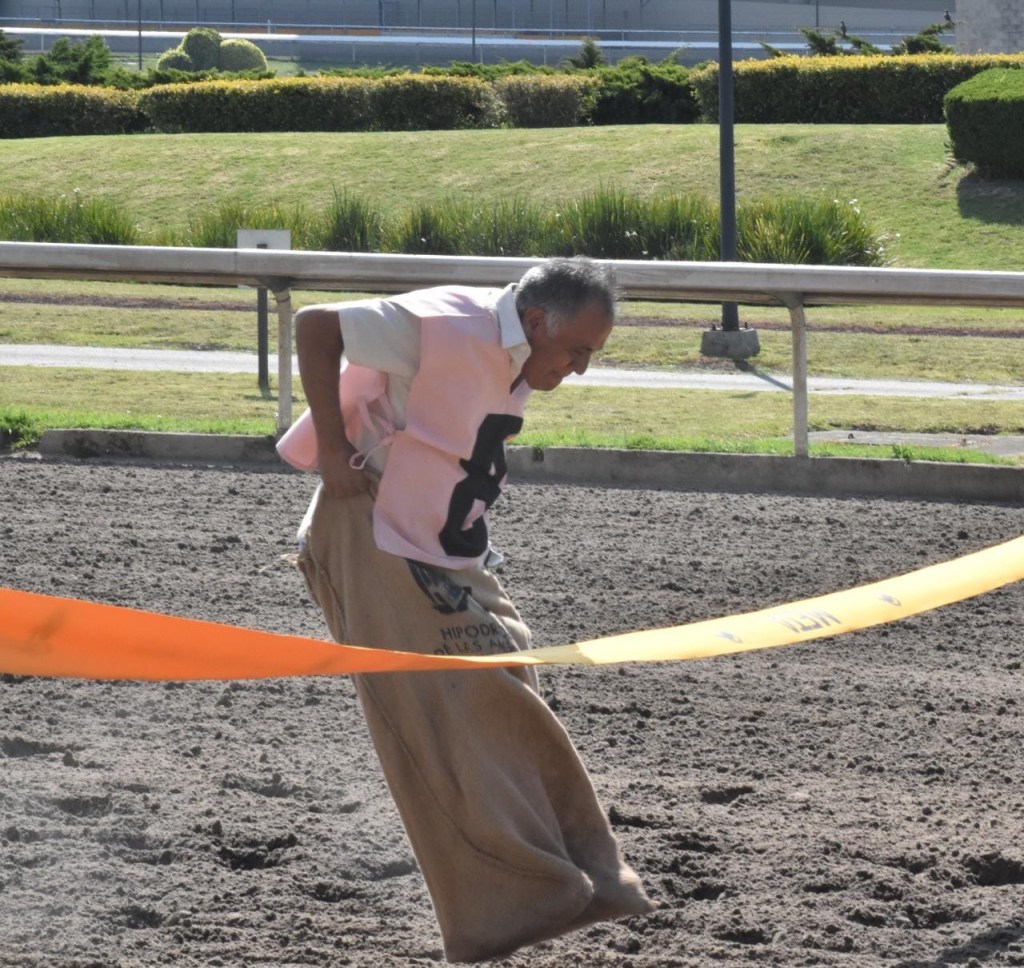 Los caballos no fueron los únicos que compitieron, pues los papás sacaron a su niño interno para jugar las clásicas carreras de costales, donde las risas no faltaron entre las caídas y golpes.
