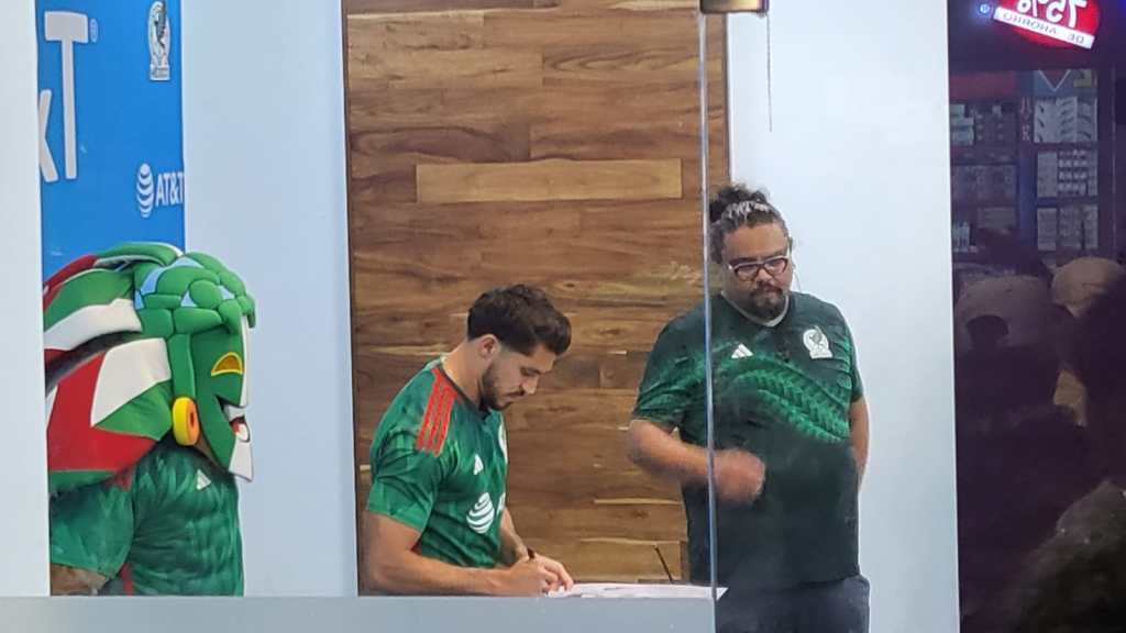 Henry Martín, delantero del Club América y de la Selección Nacional Mexicana se presentó en la plaza Town Center el Rosario para firmar autógrafos de la afición en el AT&T, patrocinador del equipo nacional.