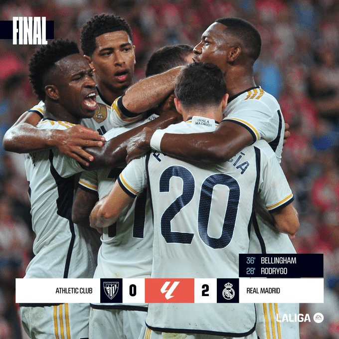 Los dirigidos por Carlo Ancelotti empezaron la nueva temporada con una victoria, donde el MVP del partido fue el jugador inglés y nuevo refuerzo Jude Bellingham, demostrando porqué que el Madrid desembolsó 103 millones de euros por el.