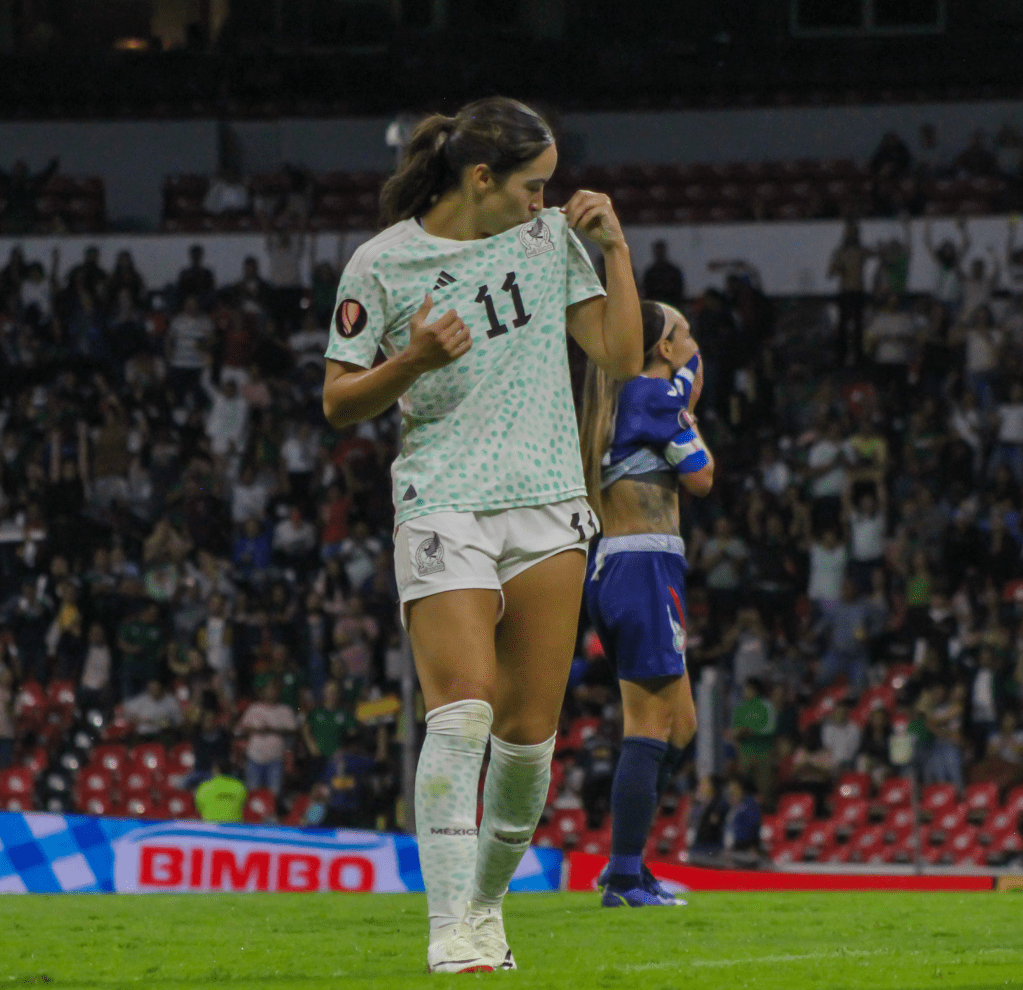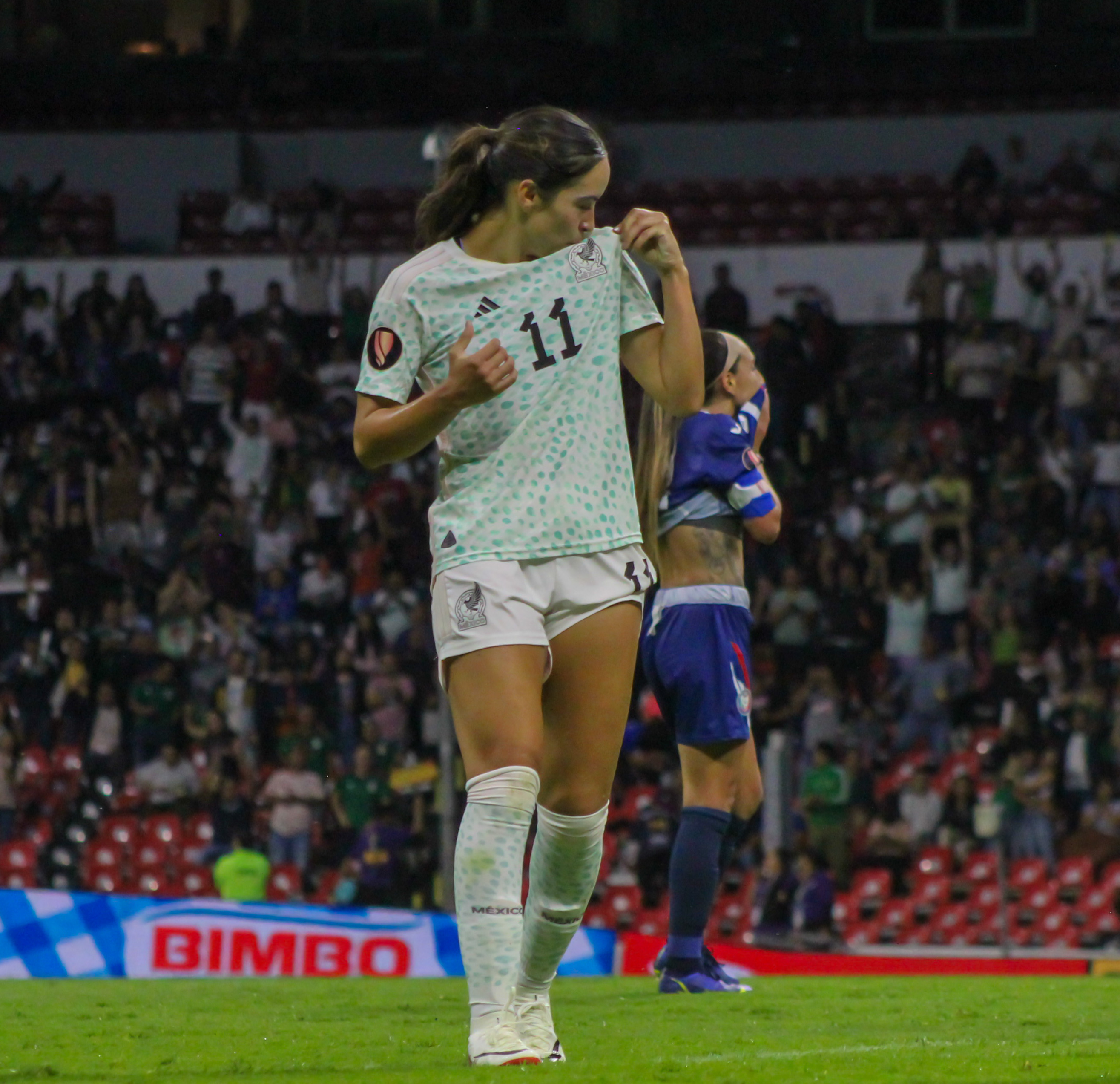 La capitana María Sanchez, proveniente del Houston Dash de la NWSL en Estados Unidos, con un gol de tiro libre pegado al ángulo derecho de la arquera caribeña, abrió el marcador para las mexicanas minutos antes del final de la primera mitad.
