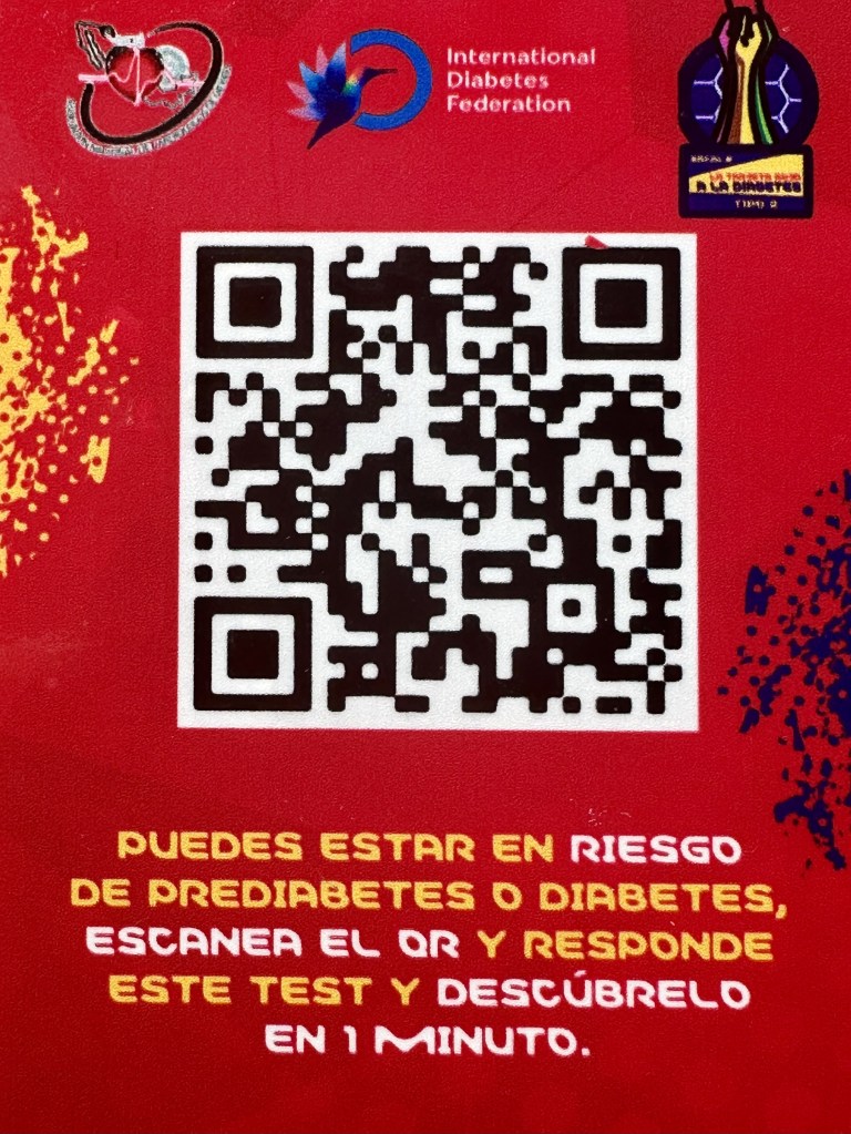 Para acceder a un examen gratuito y conocer si estás en riesgo de padecer estas enfermedades, escanea el siguiente código QR o ingresa a la página web sacalelarojaaladiabetes.com.