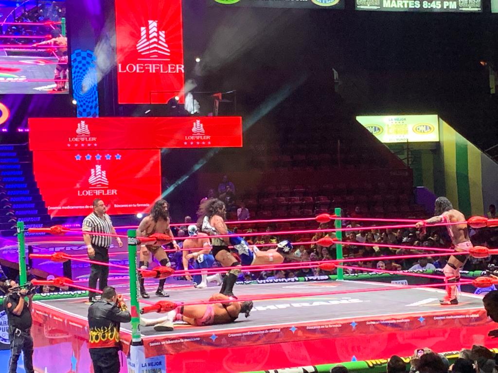 La lucha estelar de la noche enfrentó a los Campeones Mundiales de Tercias: Volador Jr., Star Jr. y Atlantis Jr. en contra de Bárbaro Cavernario, El Terrible y Dragón Rojo Jr.