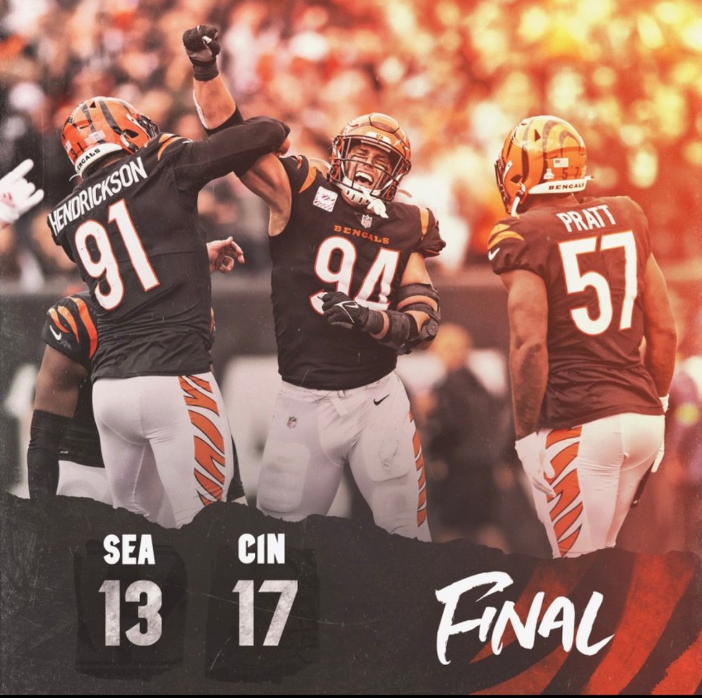 Los Bengals de Cincinnati respiran en casa tras vencer a los Seahawks de Seattle, 17-13, con una defensa que sobrellevó esta valiosa victoria, y así los colocó con un récord de 3-3 en la temporada.