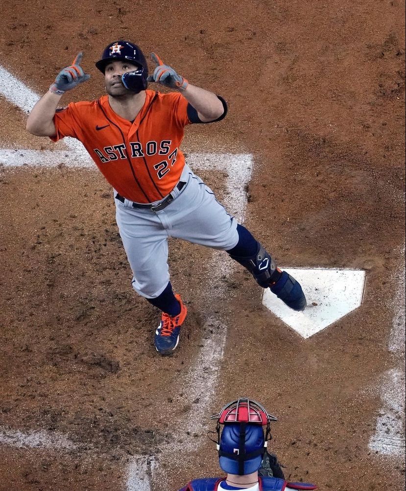 Pese a que la atención volvía a ser para los Rangers, Alex Bregman bateó de tal manera que parecía imposible que una atrapada se realizara y Adolis García, como un superhéroe, tomó tal impulso que saltó hasta atrapar la pelota y se llevó todos los aplausos y probablemente el título a una de las mejores jugaras de la postemporada.