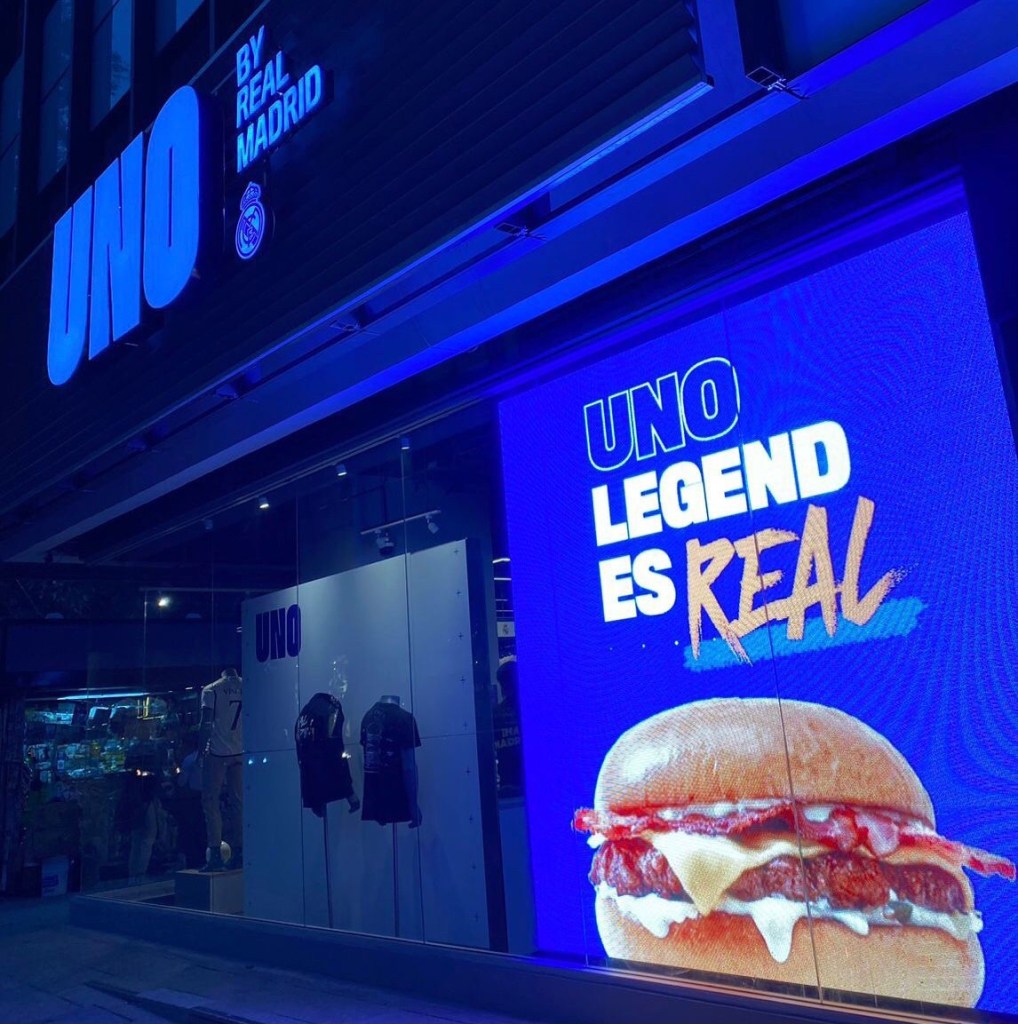 El propósito de esta cadena de restaurantes “UNO” es convertirse en un sitio donde los aficionados madridistas sigan al club en los partidos acompañados de la especialidad de la casa: hamburguesa “UNO Legend”, y adquirir productos oficiales del club.