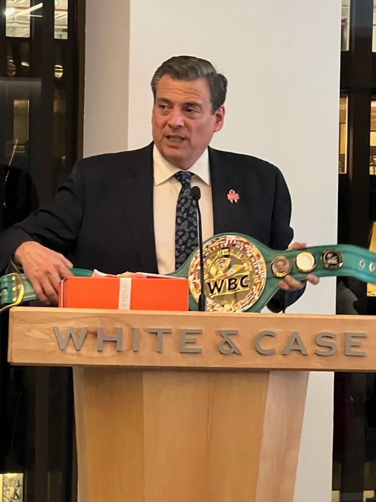 Durante la celebración del XV aniversario de Qualitas for Life, celebrado el día de ayer en las oficinas del corporativo White and Case en Nueva York, Marcela Orvañanos, presidenta de esta fundación, reconoció al mexicano por la labor altruista que el máximo organismo del boxeo a nivel mundial realiza en apoyo de la comunidad de hispana. En próximos meses el WBC y Qualitas brindarán un curso de finanzas personales dirigido exclusivamente a boxeadores y managers de habla hispana para apoyarlos en este importante rubro de su carrera.