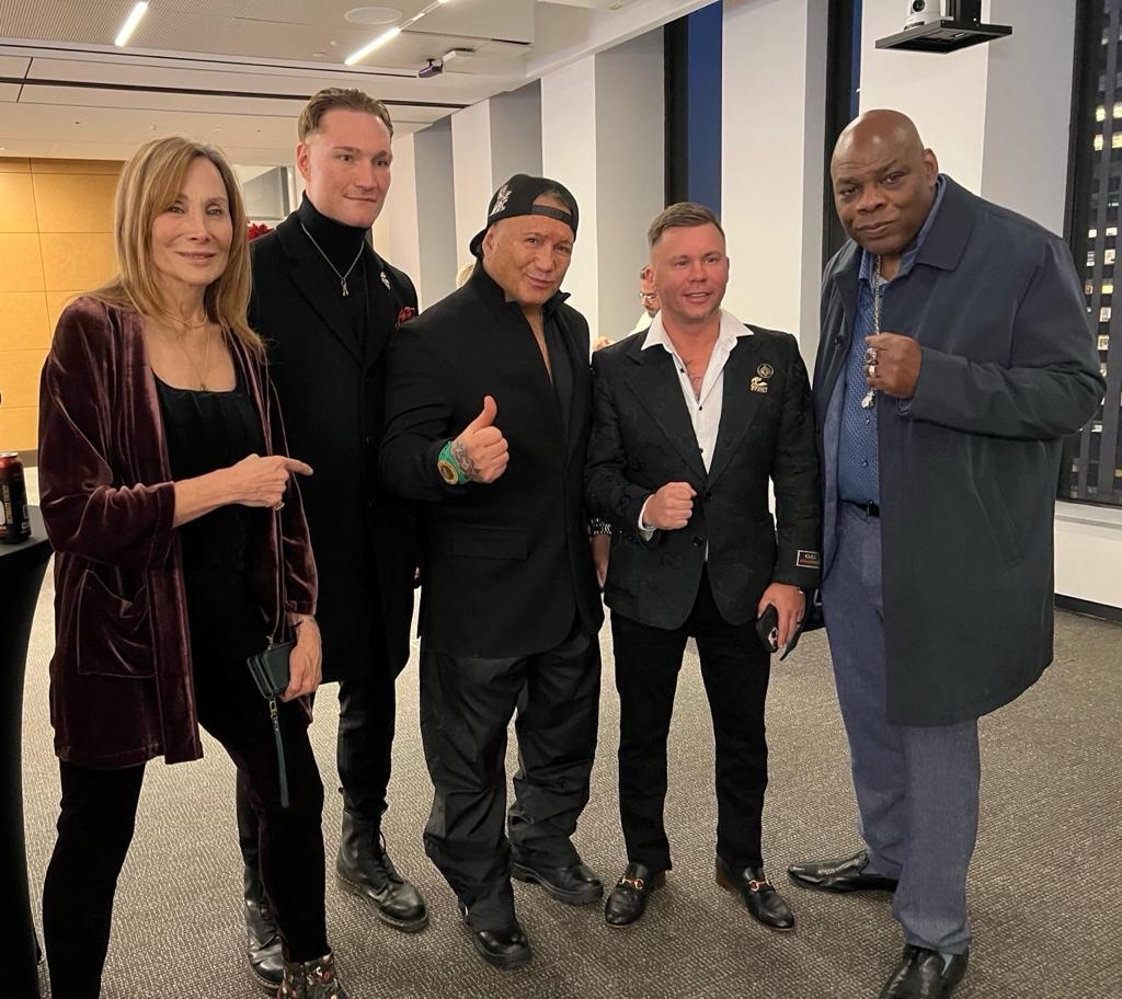 Mauricio Sulaimán estuvo presente con su esposa Christiane Manzur, sus hijos e invitados especiales de la comunidad del boxeo, incluyendo los Campeones Vinny Paz, Iran Barkley, Ryan “Jack Dempsey” Roszicki, al actor Holt Mcallany, James Mercante, hijo del legendario réferi Arthur Mercante y Jill Diamond, quien es la fuerza detrás de todas las acciones de responsabilidad social del organismo.