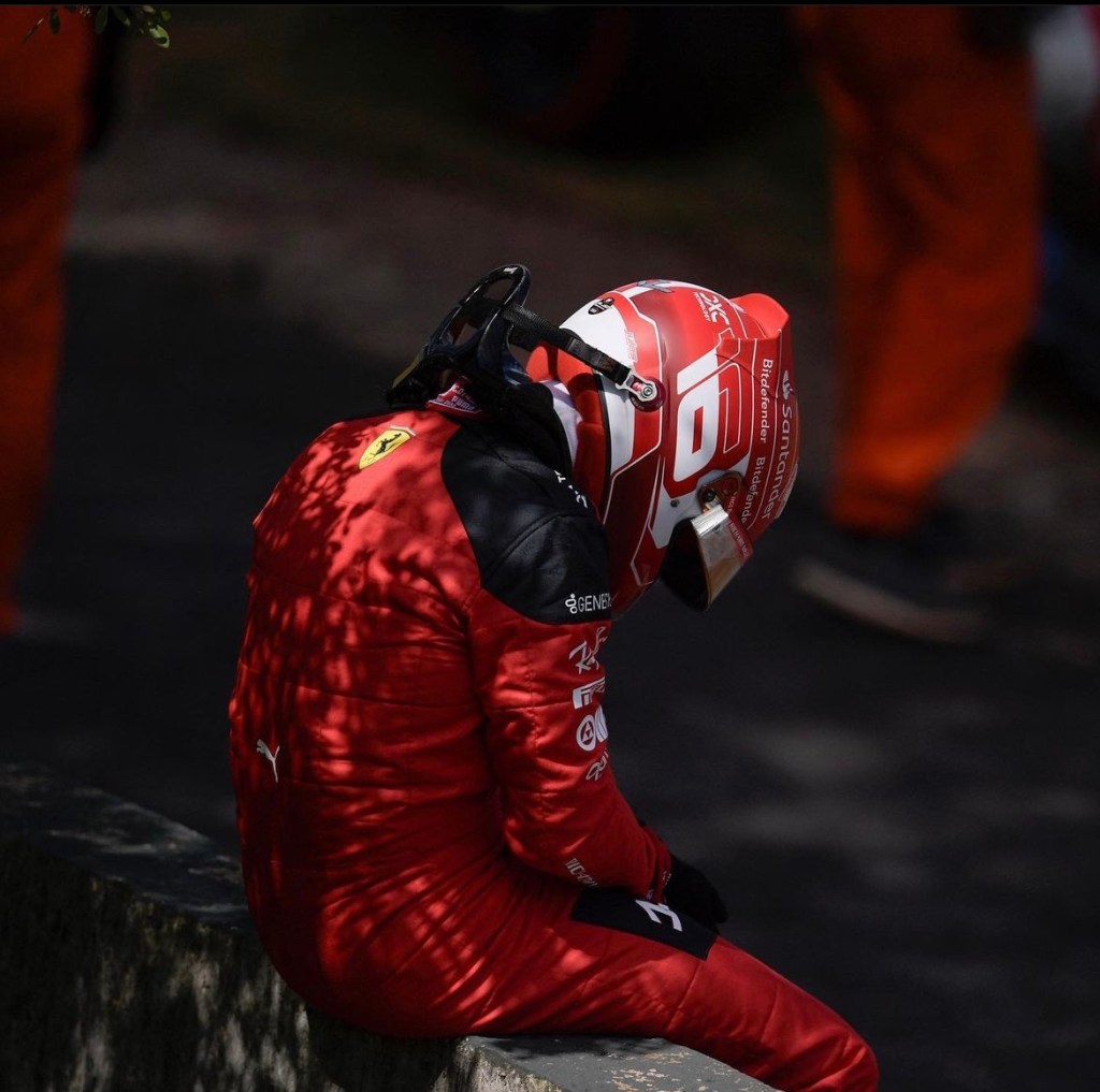 La carrera aún no daba inicio y Charles Leclerc, de la escudería Ferrari, quedó fuera tras chocar en la vuelta de formación al perder el control de su monoplaza y terminar estrellado contra la valla de contención. “¿Por qué tengo tan mala suerte?”, repetía Leclerc molesto y decepcionado después de que él sentía que recuperó la confianza en las carreras tras su gran actuación en el Gran Premio de México.
