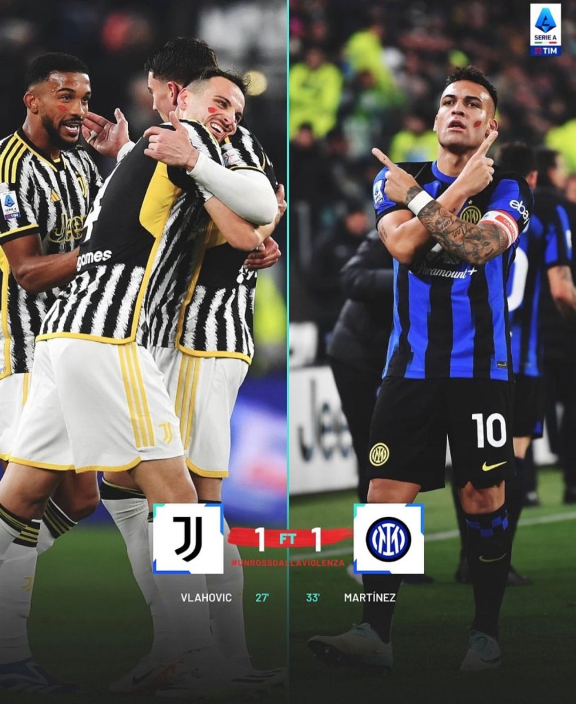 El partido que definía al primer lugar de la Serie A, entre la Juventus y el Inter de Milán, término con un gris empate a un gol. Se tenía mucha expectativa del ‘Derby d’Italia’, la cual se cumplió únicamente durante cinco minutos del primer tiempo.