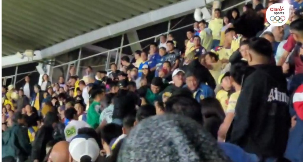 Niños, mujeres y familias enteras entre los salvajes aficionados que comenzaron una pelea en las gradas después del encuentro entre las Águilas y el León en el Estadio Azteca.